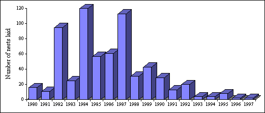 Numbers of nests since 1987 are apparently lower than the earlier years