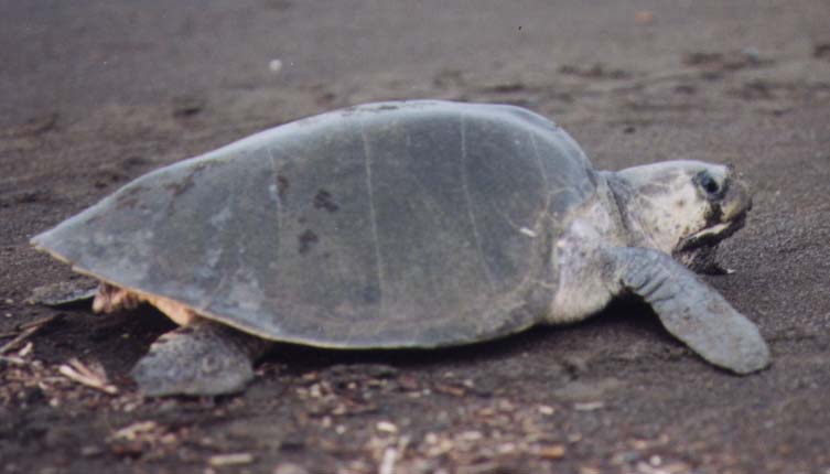 The Olive Ridley is relatively rare in Pakistan, but nestings have been reported each year at Hawksbay and Sandspit beaches off the coast of karachi. Though, large arribadas occur in two beaches in Orissa State (north-east peninsular India), on the Bay of Bengal. The Sind Wildlife Department in collaboration with WWF-Pakistan is working on a project for safe release of turtle hatchling to the Arabian sea since 1980's. The egg are carefully kept in closed enclosers and released after the hatchlings are hatched. Unfortunately, the Wildlife Department is shorts of funds and faces many problems (Click here to read a report from The EARTH TIMES). Recent reports indicate that the population of nesting females has declined alarmingly (Click here for a report by Fahmida F. Israr).