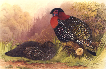 detailed information on the species' actual display. Delacour (1977) implies that all species of tragopans have essentially the same display sequence, but this is evidently not true. Nonetheless the display may be quite similar to that of the satyr, its apparent nearest relative.