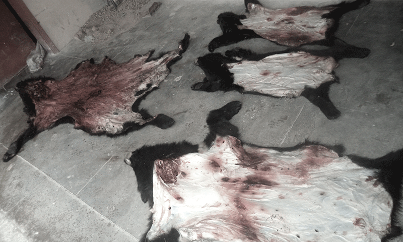 The bear skins of four culled bears at the Mansehra Wildlife Division. — Photo by author