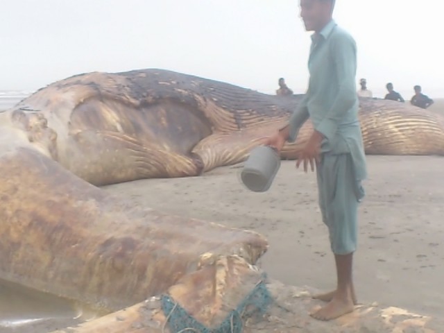 The whale was found by Ibrahim Hyderi fishermen who were leaving on an expedition on Monday morning, around 50 kilometres away from Ibrahim Hyderi. “Our fishermen have found a dead whale,” informed Kamal Shah of the Pakistan Fisherfolk Forum. “Most of the people in the area are saddened by the death of the animal.”